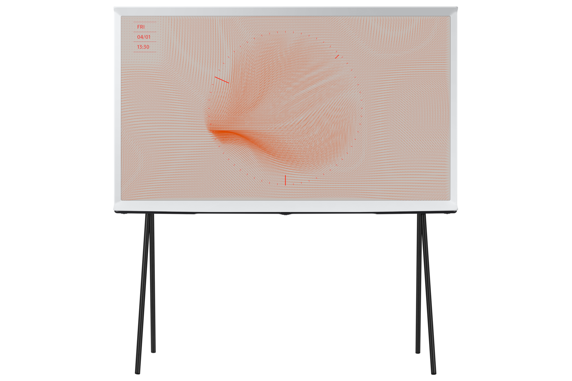 Установите телевизор Serif в любом месте комнаты. В комплекте с The Serif имеется съёмная металлическая напольная подставка. Установите его без ножек на полке или на столе, или разместите отдельно с подставкой. Вы можете легко менять положение телевизора.